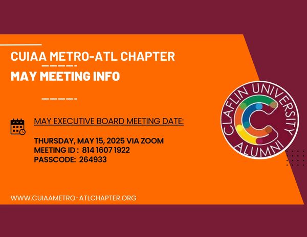 As a CUIAA chapter, we are charged with helping our young people build a better tomorrow. One important way that we do this is through scholarships. As of March 6, 2025, our annual scholarship deadline is set for Juneteenth each year. This scholarship supports deserving Claflinites and incoming Claflin freshmen from the Metro-Atlanta area. We encourage everyone who meet the criterion to apply who can benefit from this opportunity. Anyone interested in applying for the 2026-2027 school term should from October 1, 2025-June 19, 2026.